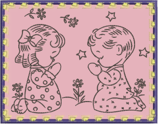 2 betende Kinder im Rahmen