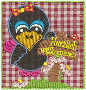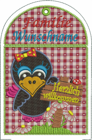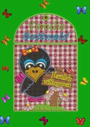 wenn ihr ein größeres Stück Stoff einspannt und "ganz normal" das Motiv stickt, ohne den letzten Umrandungsstich (ITH Stich), bekommt ihr ein größeres Türschild und könnt es noch zusätzlich verzieren!.