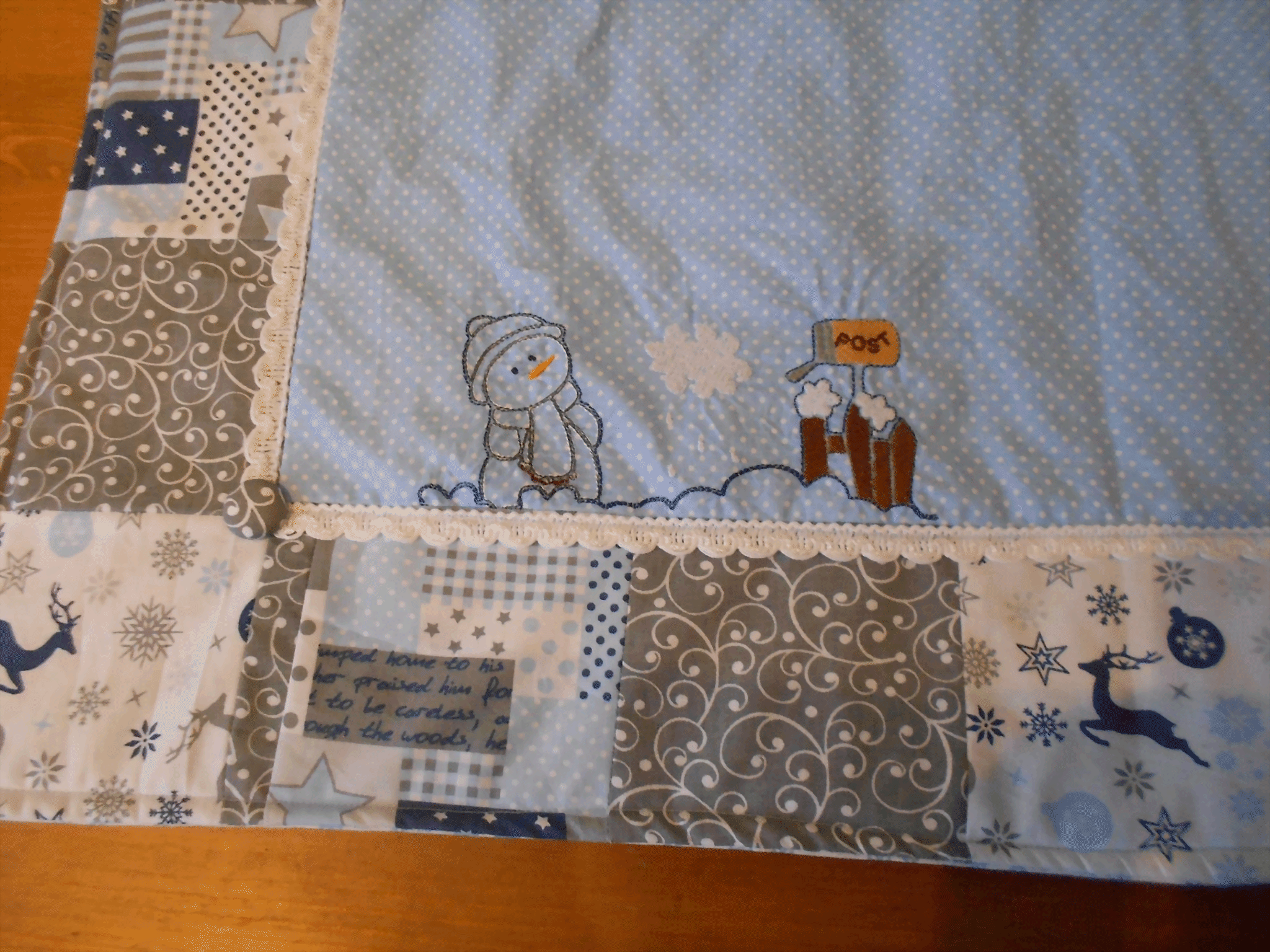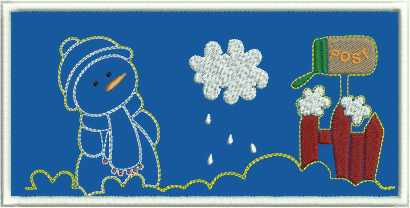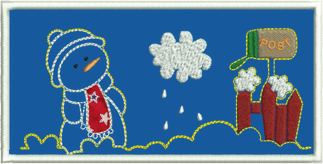 Winter Time Schneemann mit Postkasten Fransenschal Applikation