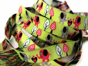 Webband mit Elefantenliebe, Herzen, Bäumen 1,60 cm breit 45% Baumwolle 55% Viscose